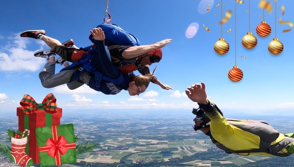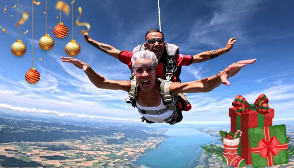 Promotion fêtes 2025, 15% de réduction sur nos prestations de saut tandem ou sur le combo vidéo. Cette offre promotionnelle est valable si la prestation est effectuée avant le 1er mai 2026. Au delà de cette date on te demandera de compenser le prix sans la réduction, seule exception pour les inscriptions faites avant mais dont le report est dû à la météo.